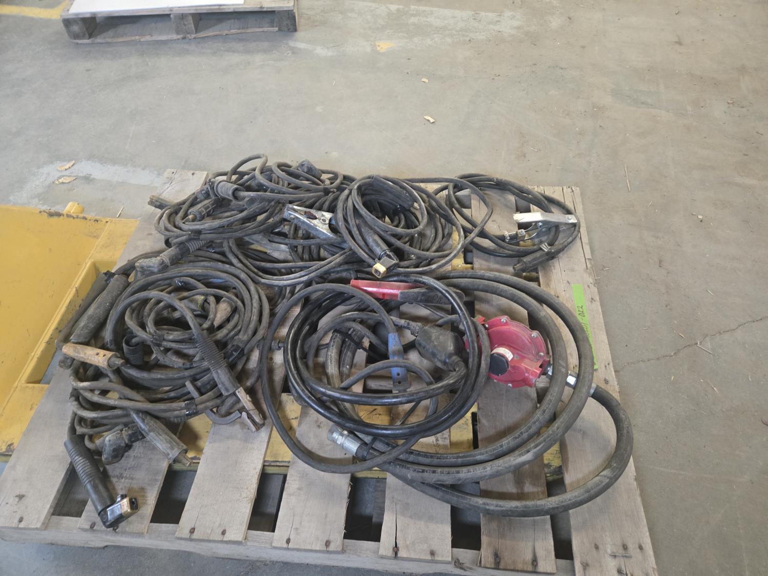 7196 Qty of Welding Cables, Propane Hose with Regulator, Gouger