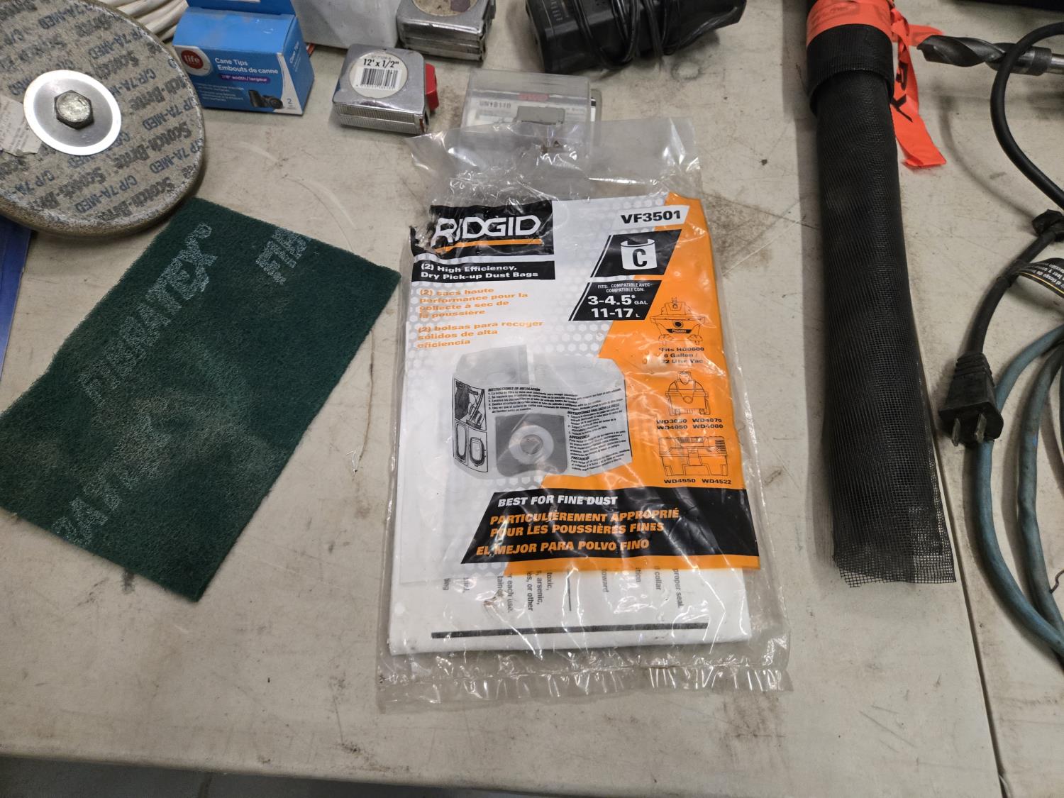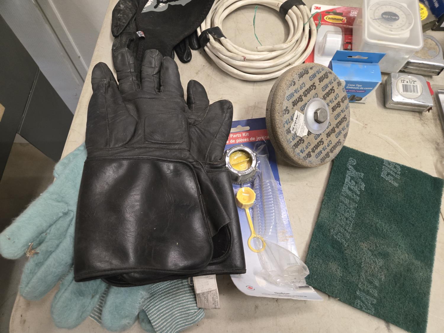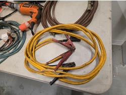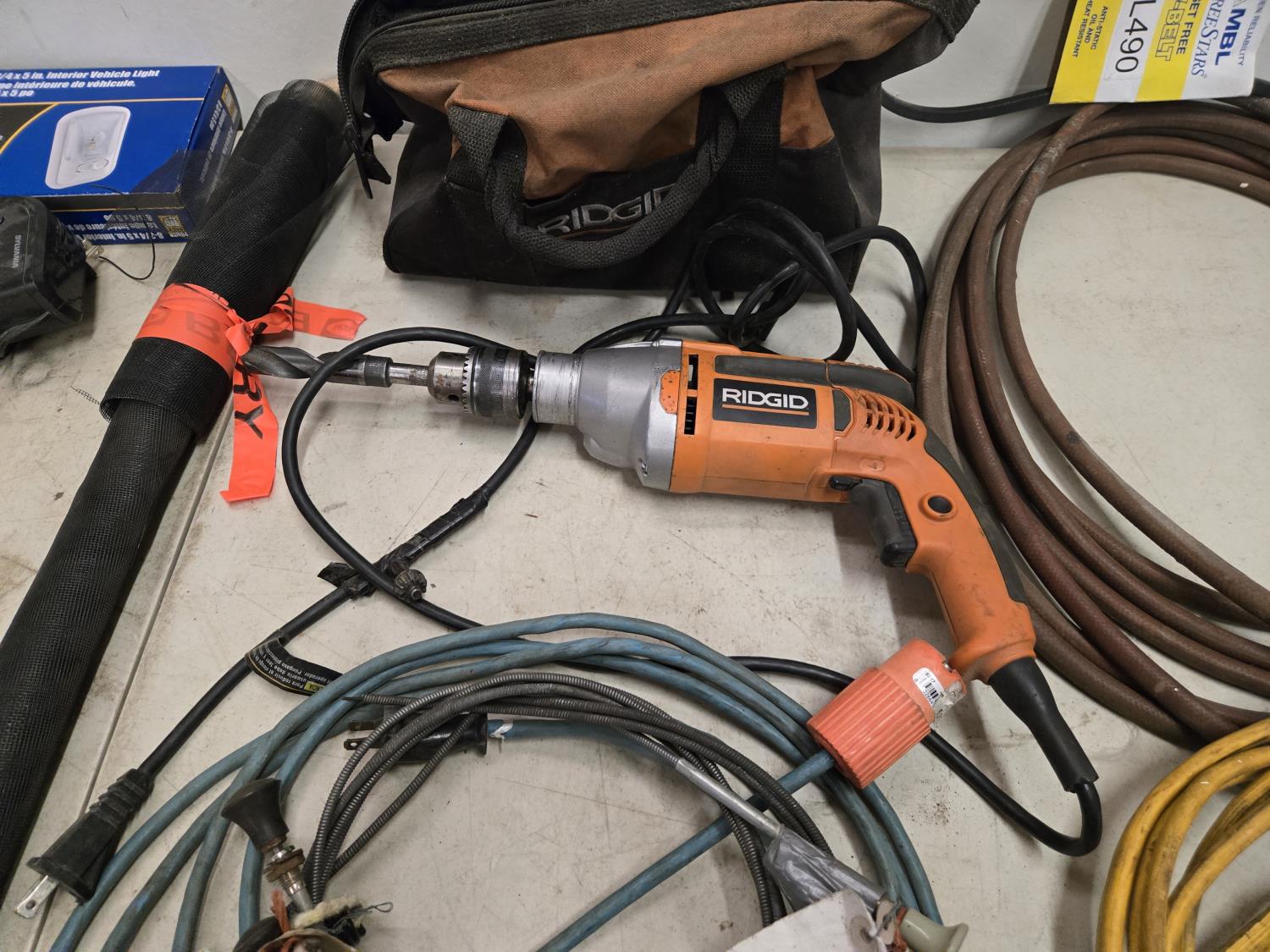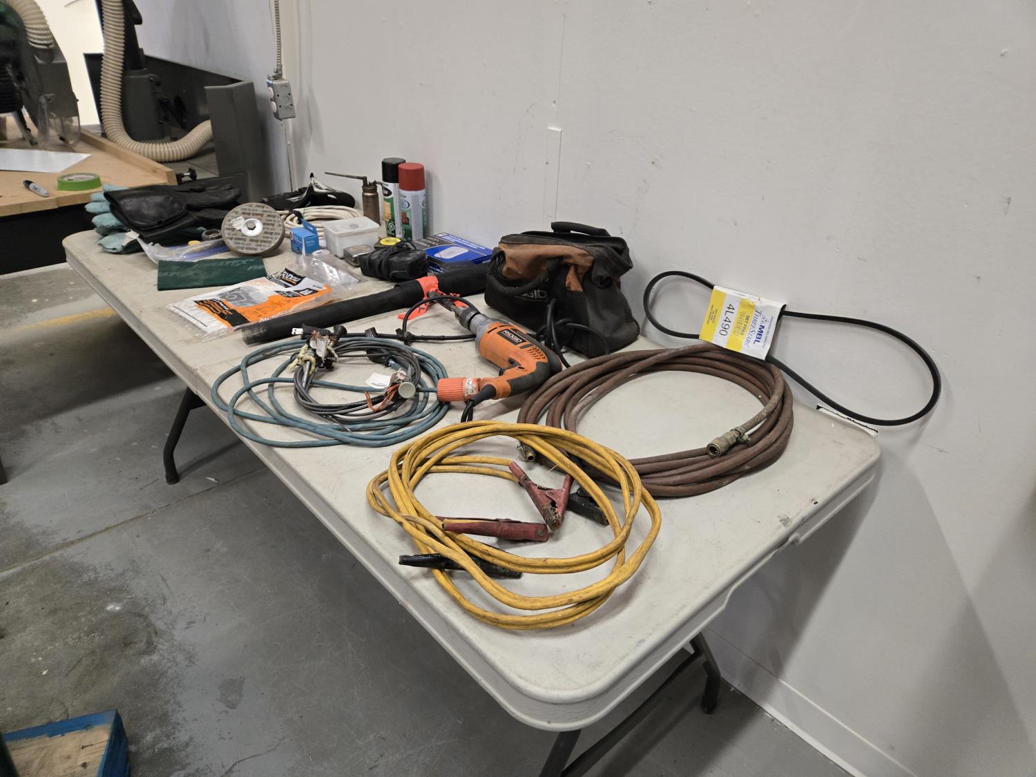 7346 Ridgid 1/2 Inch Corded Drill, Booster Cables, Gloves, Misc Shop Supplies