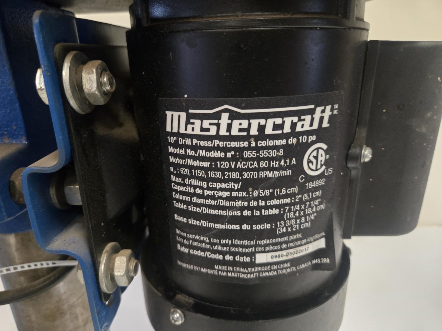 5159 Mastercraft 10 Inch Bench Drill Press