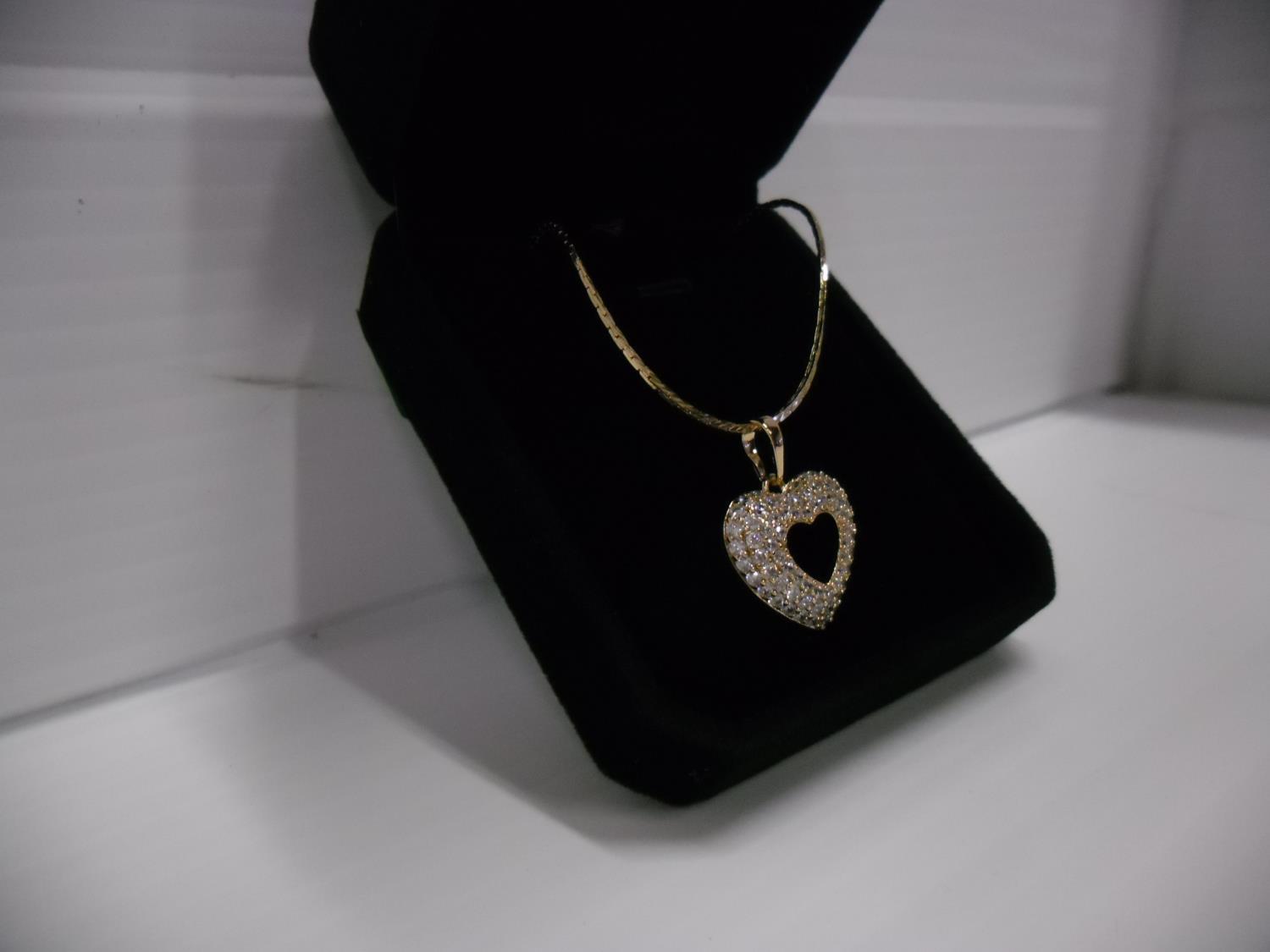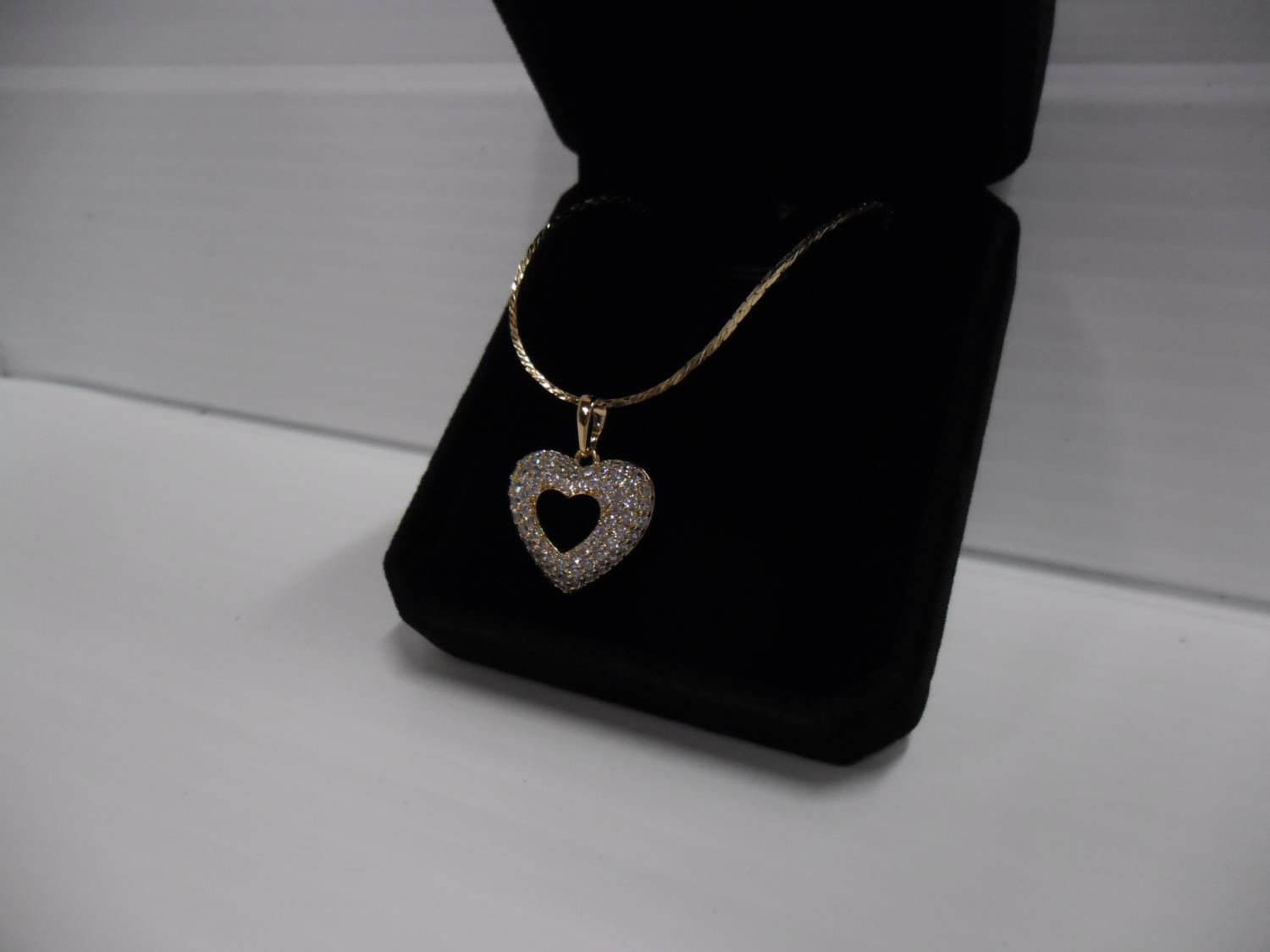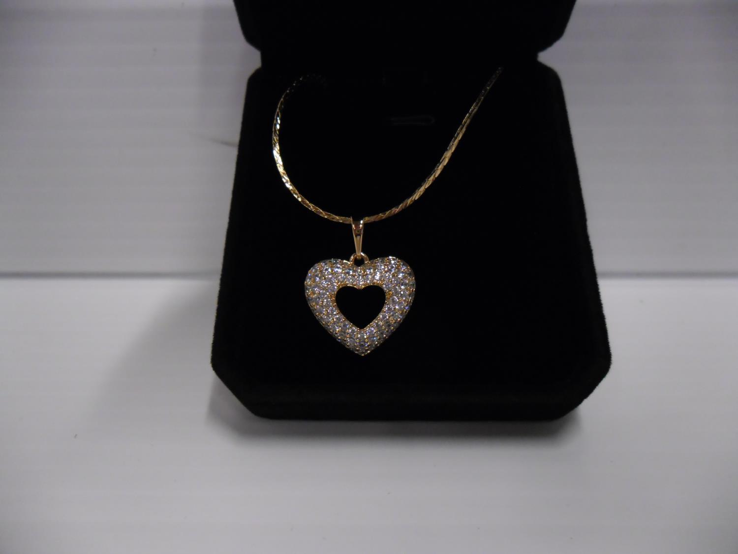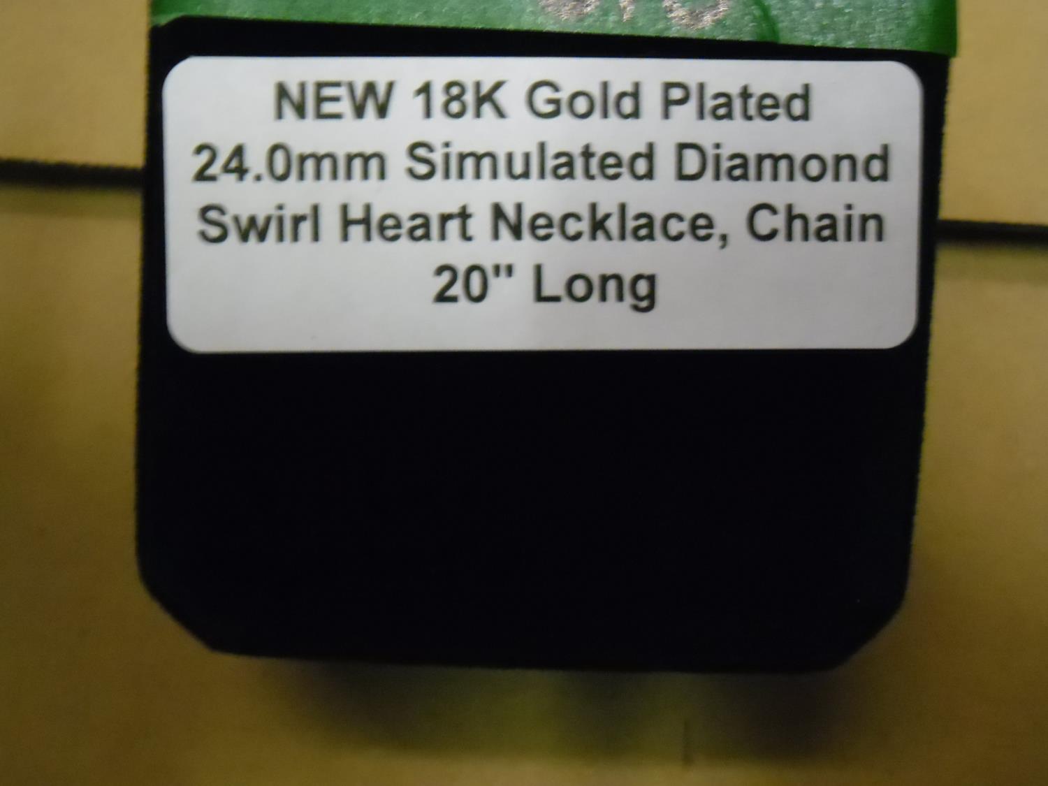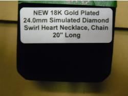 5089 18 K Gold Plated 24.0 mm Simulated Diamond Swirl Heart Necklace (Unused)