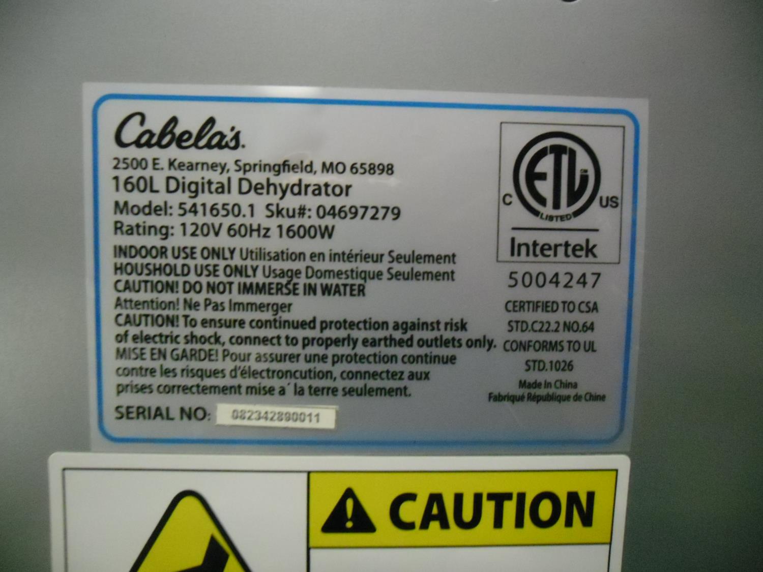 5187 Cabela's 160L Commercial Dehydrator