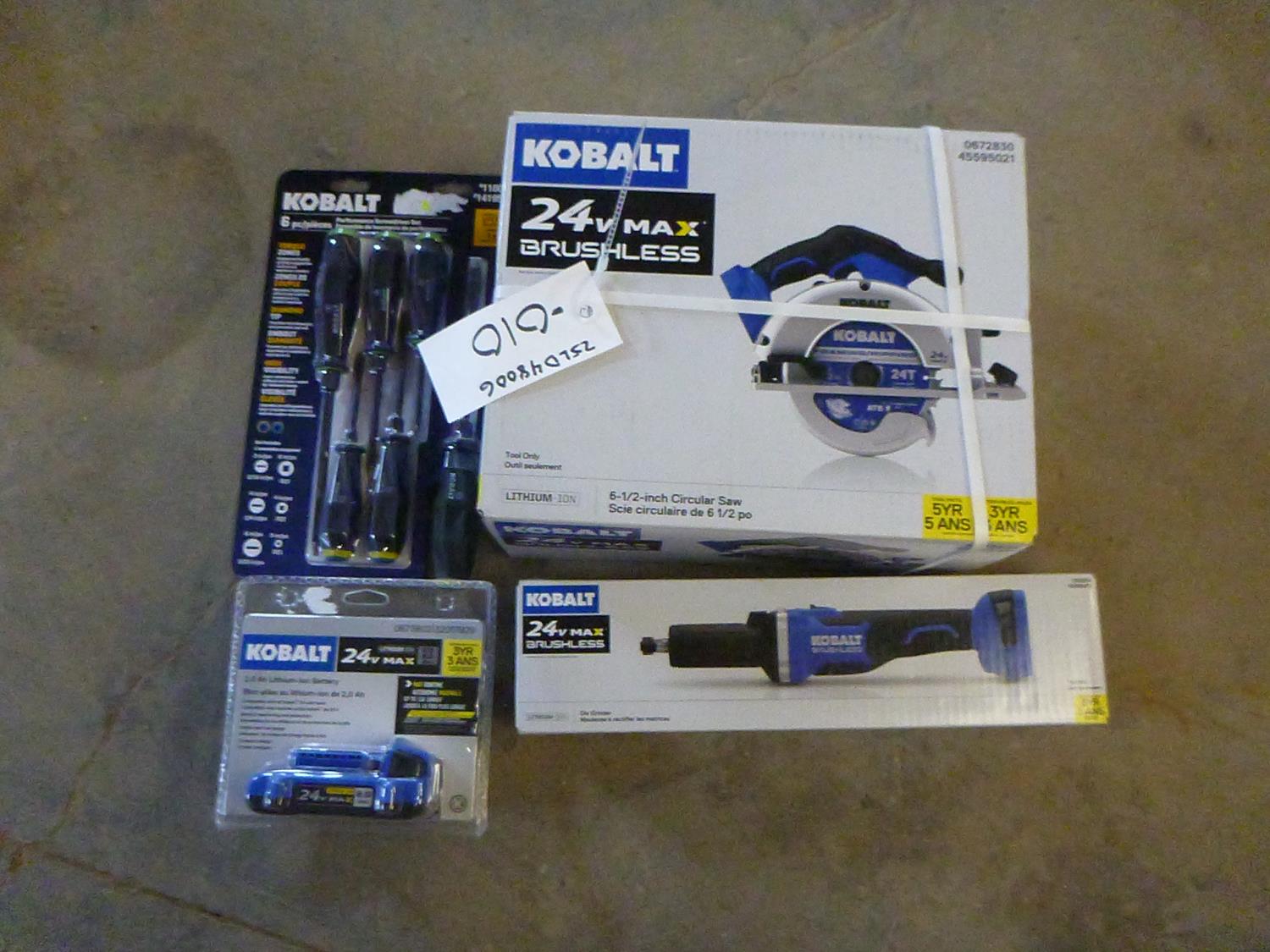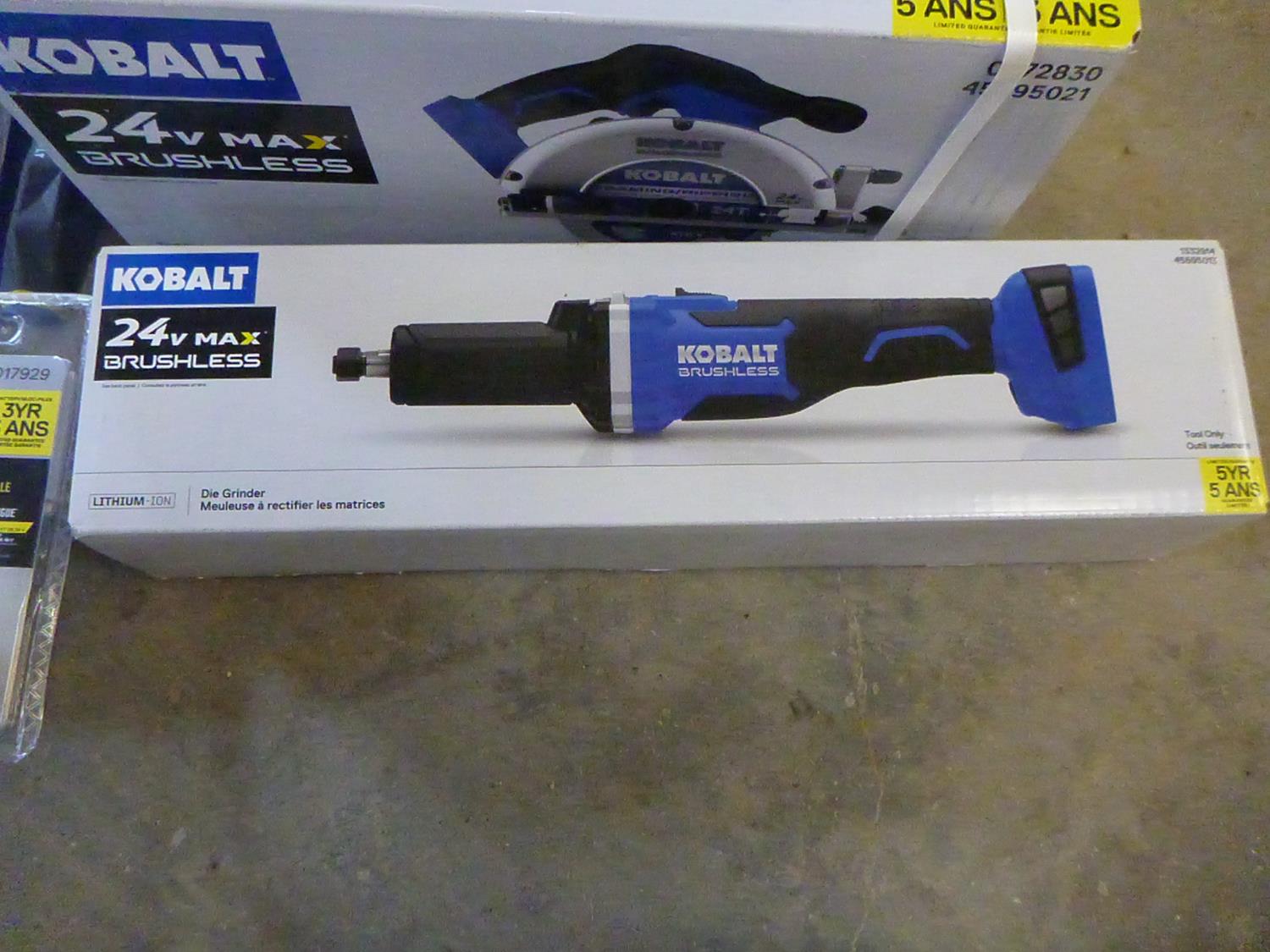 Kobalt 24V brushless die grinder, kobalt 6 pc diamond coated screwdriver set, 24V 2ah battery