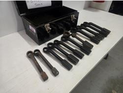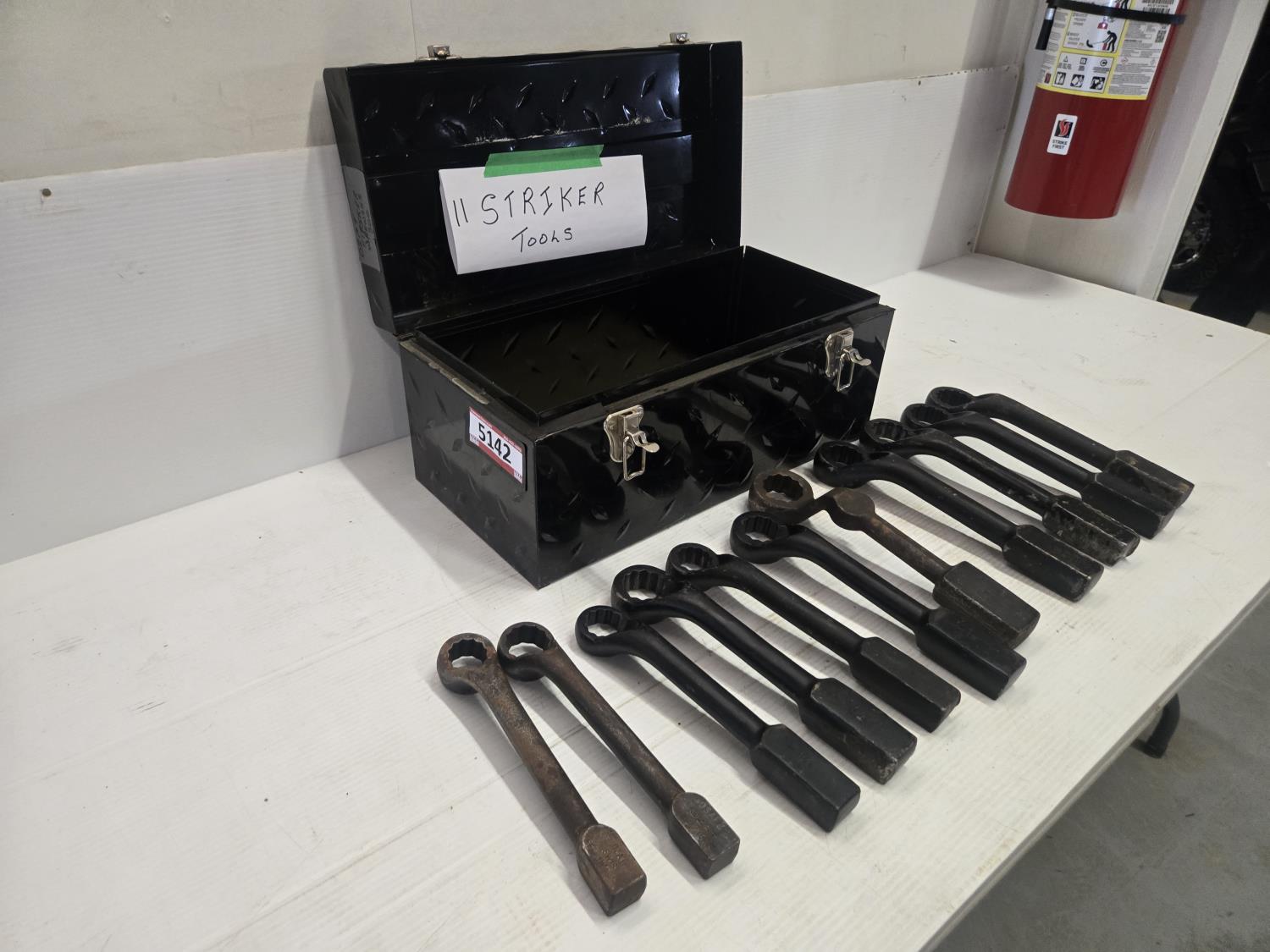 11 striker, comes with toolbox, sizes, 1-1/8 inch, 1-3/16 inch, 1-1/4 inch, 1-3/8 inch, 1-7/16 inch, 1-1/2 inch, 1-9/16 inch, 1-5/8 inch (2), 1-11/16 inch, 1-15/16 inch