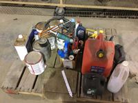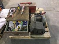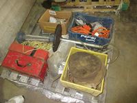 plumbing snake, pipe fitting, gauges, welding rod and misc items