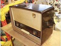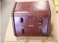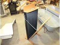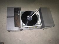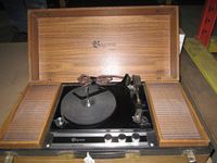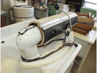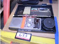 Zenith sewing machine, coffee table and Sony cassette transcriber, clock radio & misc.