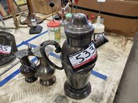 Sandwich maker, coffee maker, kitchen canister set with bread box, pogo stick, misc.