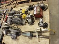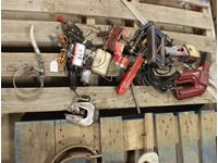 battery chargers, yard tools, insect fogger, chain pipe, wench & rail car mover