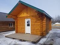 milled logs to 9 in and coped on ends, 10 ft walls, made for loft, insulated floor on four 6 x 6 skids with steel cross members & steel hitch, outside is stained and inside is sanded and ready to finish<br/>