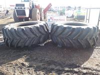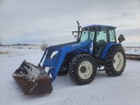 New Holland loader with bucket, joystick, 16 speed partial power shift, LHR, cab, 540/1000 pto, 380/85R28 front tires @ 40%, 18.4-38 rear @ 40%, 6883 hrs<br/>