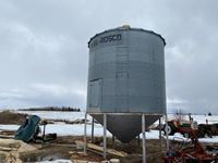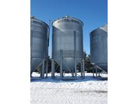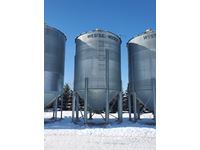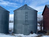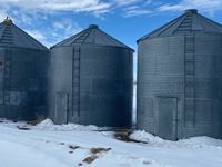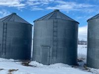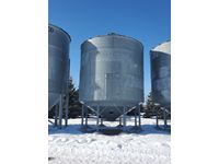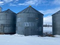 2200 +/- bu cap, 14' diameter, aeration pipes, factory built hopper, 8 legs (bins are on cement pilings that go with bins)