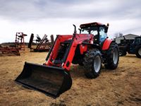L468 loader by Quike, Q/A 8' bucket, joystick, cab, heater, A/C, 16 speed partial power shift transmission, left hand reverser, buddy seat, 3 Pt hitch, 540/1000 PTO, 3 hydraulic outlets, 420/85R28 frt & 520/85R38 rear tires