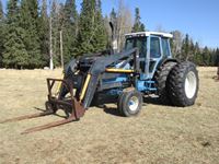 Leon 808 loader, bucket, bale forks, cab, heat, A/C 16 speed dual power transmission, 3 Pt hitch, 540/1000 PTO, 2 rear hydraulic outlets, 11.00-16 front & 20.8X38 rear duals