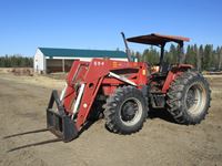 Allied loader, bale forks, 12 speed transmission, 3 Pt hitch, 540 PTO, (3) rear hydraulic outlets, roll bar with canopy, 13.6X24 front & 18.4X34 rear tires