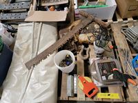 saw, measuring tape, chains, etc