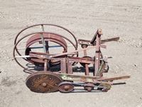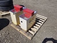cattle prods, calf dehorner, post hole digger, dirt scoop, 12 ton jack, box with 5 heat lamps, clevises & pins