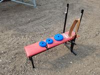 Mitre saw stand, old coffee table, small stand on caster wheels & gun rack