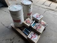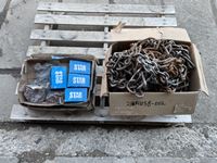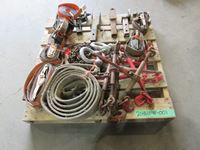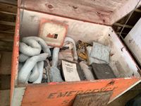 Rigid 700 power threaders, fall set of threader heads, 0 inch -4 inch cold cutters, 0 inch -2 inch cold cutters, 36 ft pipe wrenches, 24 inch aluminum pipe wrench, 2 bins full of chains, slings and come along
