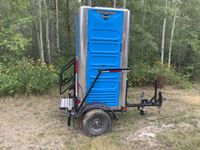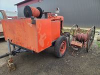 ASME tanks, (1) 120 gal used oil tank, (3) fresh oil & fluid tanks, (1) epoxy lined coolant and antifreeze tank, 22 CFM compressor driven by Honda 8 HP electric start engine, reels and hoses (1) 1 inch X 50 ft used oil, (3) 3/4 inch X 50 ft fresh oil, (1) 5/8 inch X 50 ft fresh oil, forklift, able (empty only), 4 ft 1 inch W X 11 ft 2-3/4 inch L, empty weight 2480 lbs