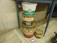 142 (3) Assorted Antique Oil Pails & (1) Grease Can