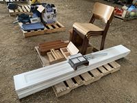 53 Wooden Shelves, 18 in Bifold Doors (4) Wood/Metal Chairs
