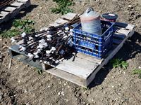 (50±) rebar with insulators, wire & cattle supplies, brushes
