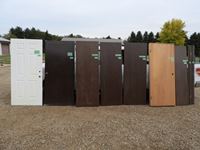 (1) 1-3/4 x 36 x 80 inch metal clad solid wood core door (used but in good condition), (1) 1-7/8 X 36 X 80 inch metal clad solid wood core door (used but in good condition), (2) 1 3/8 X 28 X 80 wood hollow core doors (new & unused), (1) 1-3/8 X 30 X 80 inch wood hollow core doors (new and unused), (1) 1-3/8 X 32 X 80 inch frame wood hollow core door (new and unused), (1) 1-3/8 X 18 X 80 inch wood hollow core door (new & unused)