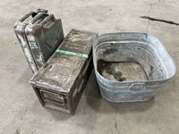 1687 Metal Gas Can, Ammo Box & Metal Tub