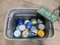 1577 Qty of Tobacco Tins & License Plate