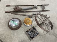 1633 Steel Wheel, Box of Railway Spikes, Light, Etc.