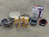 Food bowels, water dispenser, Arm & Hammer litter deodorizer, clippers