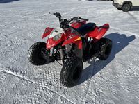 Front blade, 48 inch smooth bucket, thumb, cab, heat AC, radio, back up camera, air shut off, 27.5 inch wide track