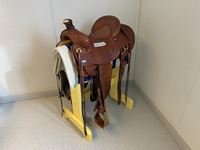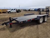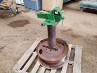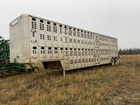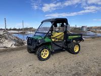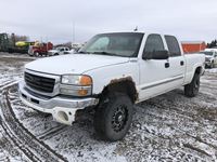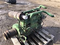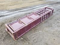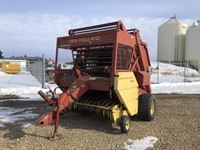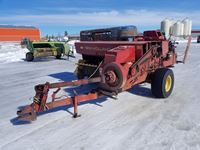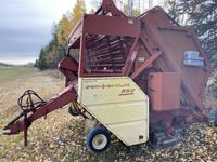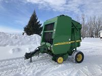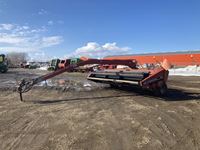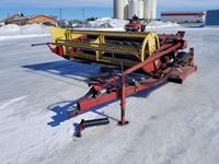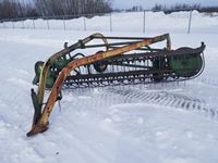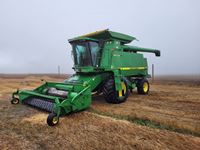 2004 MacDon 972 header, pick up reel, cab, air, heat, AC, poly pick up fingers, newer knives and guards, add on swath roller hitch, John Deere ATU wiring, 50% 21.5-16.1 12 ply drives, 60% 16.5-16.1 casters, 1541 engine hrs, 1275 header hrs