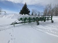 12 inch spacing, double shoot, JD 1910 air cart, 3 hi-flow, 2 low flow rollers, single row packers, 10 inch loading auger, single fan