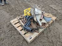 (4) mud flaps, Ford 302 header, driveshafts, cultivator shovels, (5) drill head bits, (1) roll of wire, crop lifters