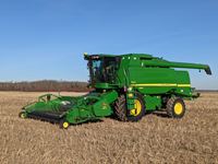 John Deere 914 14 ft header, s/n H00914W660269, VSR, auto HHC, rock trap, fine cut chopper, 20 ft auger, lateral tilt feader house, 30.5L-32 F, 14.9-24 R, 3490 sep hrs showing
