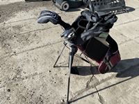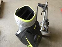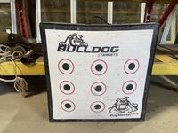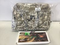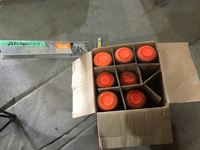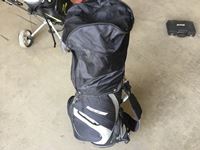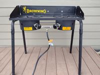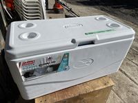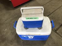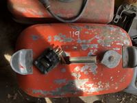 Camping fuel, Coleman cooler, water jug, (3) propane bottles, lamp, axe, Sport Cat heater, tarp