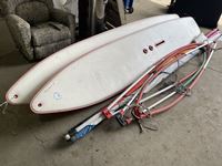 Foot pump, seat, paddles, Minkota 30 Lb thrust electric motor, Shakespeare 55 Lb thrust electric motor, miscellaneous parts