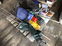 Qty of fishing rods, nets, lamps, tackle box, fishing line, miscellaneous