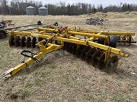 20 inch front discs with 9 inch spacing, 21 inch rear discs with 9 inch spacing, hydraulic lift cylinder, 9.50-14 tires