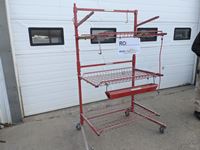 One parts bin, (3) 125 lb shelves, foldable, on casters