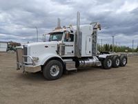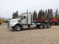 Cummins ISX, 600 HP, 6 cylinder, diesel, engine brake, Eaton Fuller RTLO18918B tranmission, Kenworth 8 bag air ride suspension, 20,000 lb front, T69170 HP 69,000 lb rears, full locking differentials, 4.10 ratio, 270 inch WB, SI onboard 9100QC logging scales, aluminum front bumper & logging headache rack, aluminum wheels, Webasto engine heater, 385/65R22.5 front, 11R24.5 rear