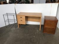 96 Desk, 2 Drawer Filing Cabinet & 3 Rack Wire Shelf