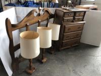 (3) lamps, headboard & dresser w/ mirror headboard is 54 inch