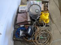 Foam anchors, 8 inch grinding wheel, nail rings, 24 inch grab bar, hydraulic parts, nozzle, plumb bob, diaphram pump