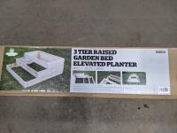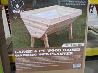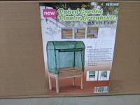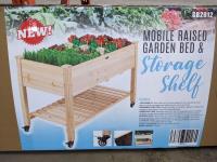 bottom shelf, locking wheels, 32" h, garden bed liner, drainage holes