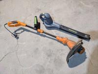 1071 Yardworks Electric Leaf Blower and Worx Electric Trimmer