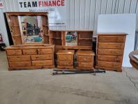 Fits twin bed, dresser: 61 inch w x 18 inch d x 34 inch h, nightstand: 22 inch w x 16 inch d x 23-3/4 inch h, mirror 38 inch x 38 inch, headboard: 44 inch h, footboard: 34 inch h