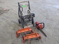 1460 Homelite Chainsaw, Poly Garden Hose Reel and (2) Scaffolding Frames
