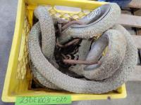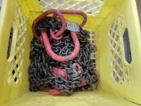 (5) 5/16-3/8 inch ratchet boomers, (4) 1/2 inch one hook tail chains, (2) WLL 3/8-1/2 inch load boomers, 1/2 inch x12 ft GR 70 chain, 7/16 inch x12 ft GR 70 chain