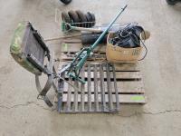 Hatchets, Mastercraft multi cutter precision saw, rope, wheels, laundry wheel, light bulbs